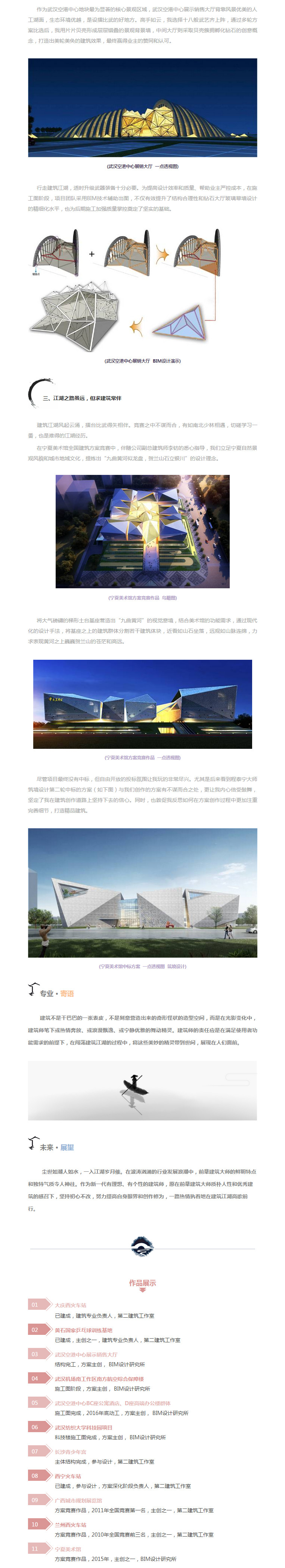 - 學(xué)習(xí)經(jīng)歷: 2004年畢業(yè)于華中科技大學(xué)建筑學(xué)專業(yè),同年進入廣東省建筑設(shè)計研究院 2009年調(diào)入CSADI